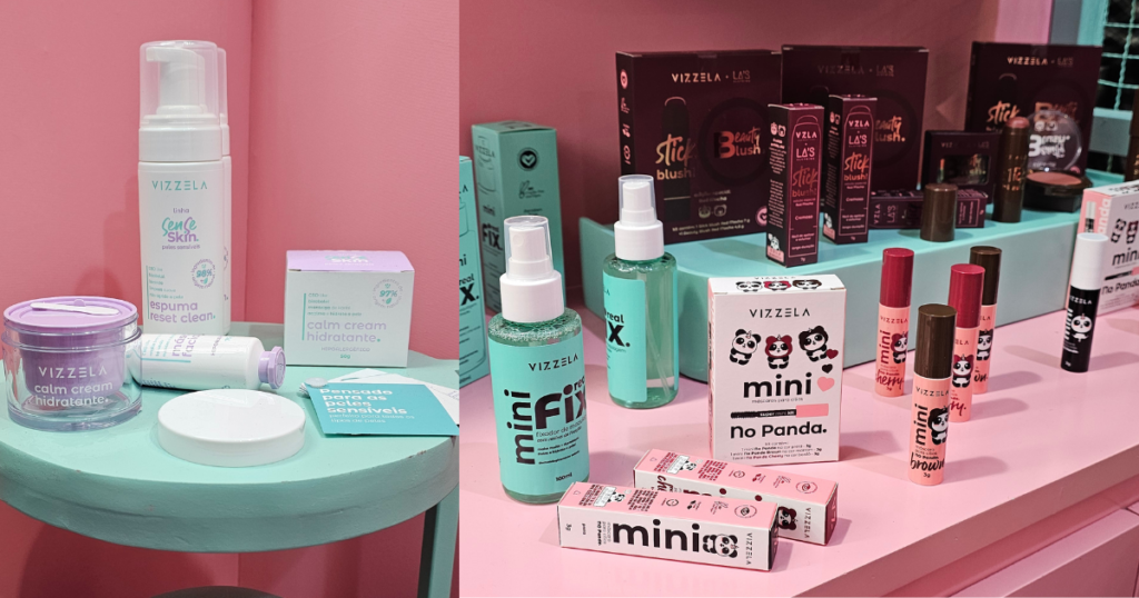 A Vizzela apresentou vários lançamentos na Beauty Fair 2025, incluindo o Gloss Cherry, a linha de skincare Sense Skin (com Máscara Facial, Espuma de Limpeza e Hidratante), o Beauty Blush Red Mocha em pó, e versões mini de máscaras e fixador. Os produtos foram inspirados no conceito “Vizzela Team”, com foco em produtos veganos e democráticos.